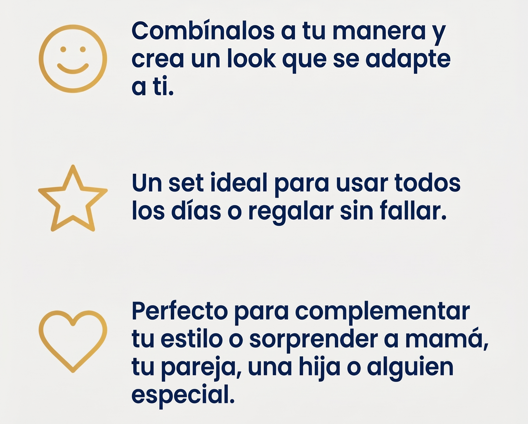 Nuestras accesorios están elaborados con oro laminado 18k, un material que combina resistencia, elegancia y un precio accesible.